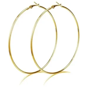 Gold Hoop Earrings for Women – Large Stainless Steel Round Hoops – Thin Lightweight Loop Earrings with Secure Click-Top Closure