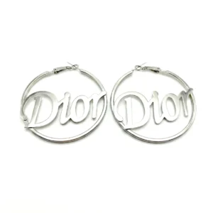 Stainless Steel Script Letter Hoop Earrings – Large Silver Tone Word Hoops – Trendy Statement Fashion Jewelry for Women
