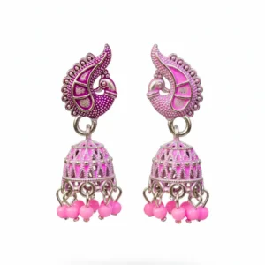 Pink Meenakari Peacock Jhumkas | Vibrant Indian Earrings