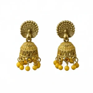 Yellow Meenakari Peacock Jhumkas | Haldi Ceremony Earrings