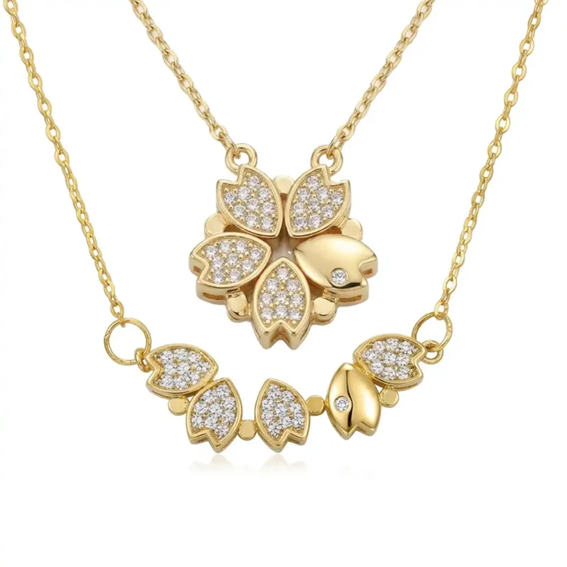 2-in-1 Gold Flower Necklace | Convertible Crystal Petal Pendant