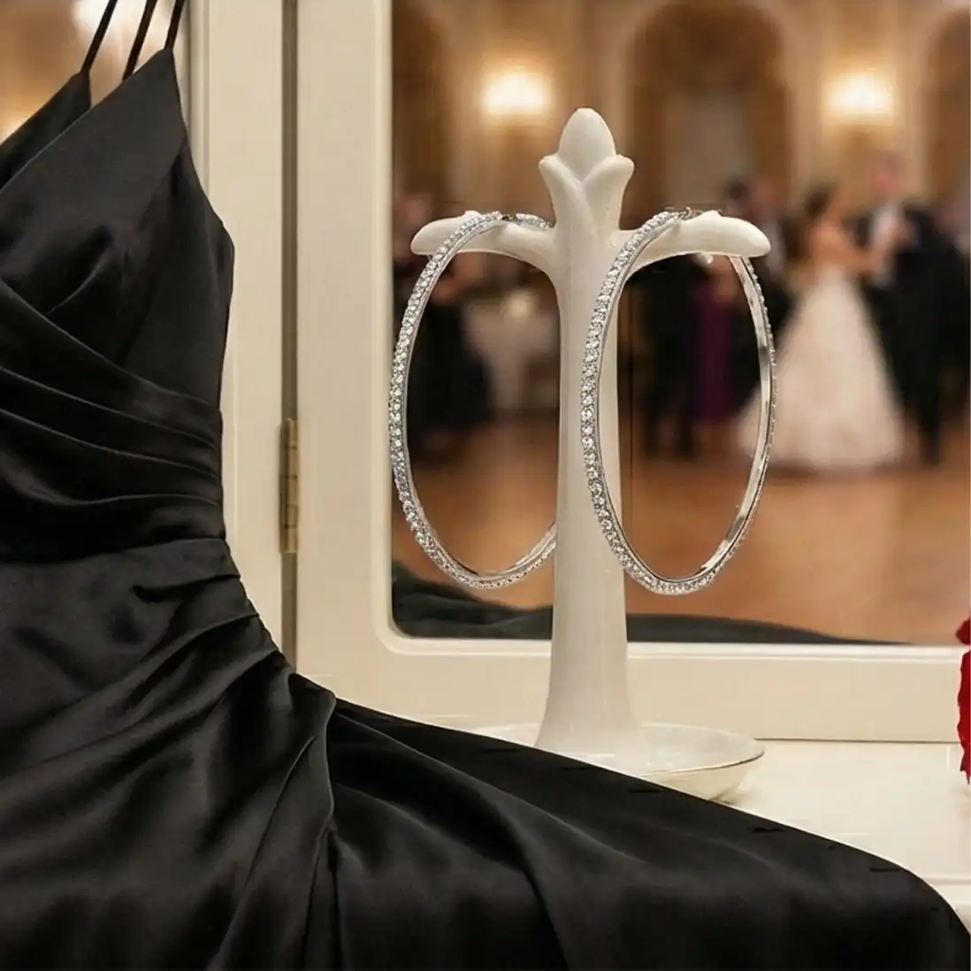 For the moments that require a touch of glamour, our Crystal Encrusted Statement Hoops are the ultimate choice. These oversized hoops are designed to capture the light from every angle, featuring high-quality stones that mimic the brilliance of diamonds.