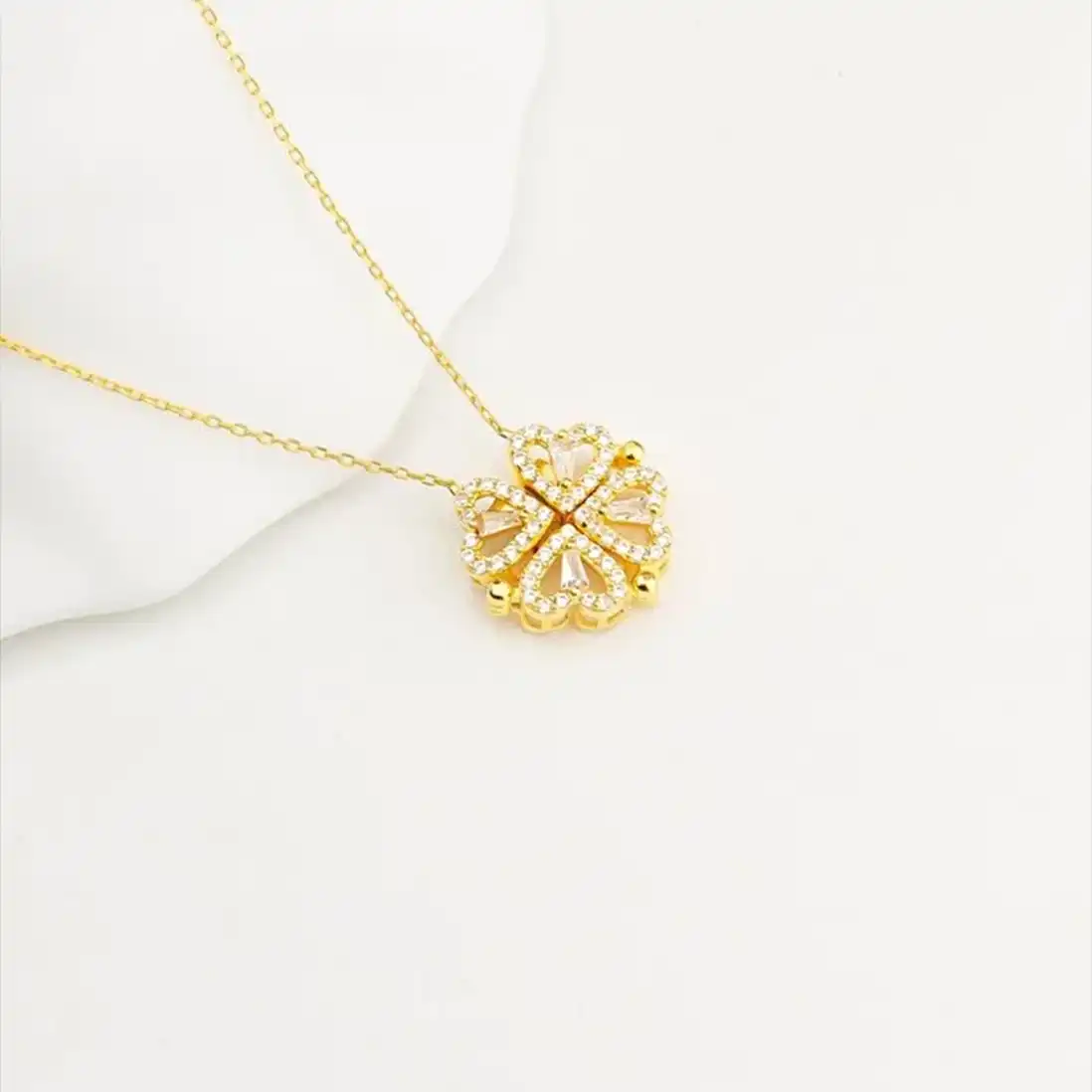 Innovative Magnetic Design: Seamlessly transforms from a sweeping row of four open hearts into a unified, lucky four-leaf clover with a gentle magnetic click.