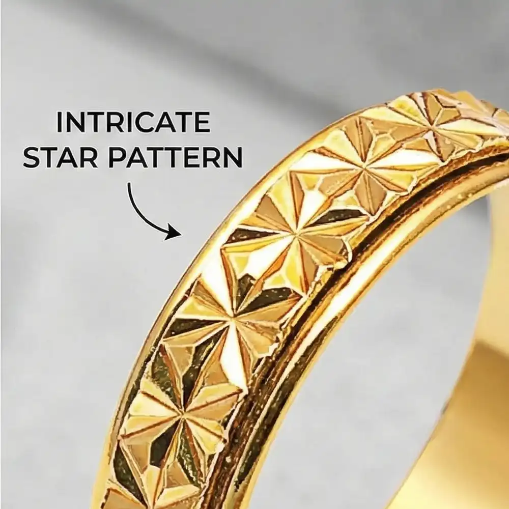GEOMETRIC DIAMOND/STAR TEXTURE: The intricate star-cut pattern isn’t just for looks; it provides a unique tactile surface. Running your thumb over the textured bumps can be just as soothing as spinning the ring itself.