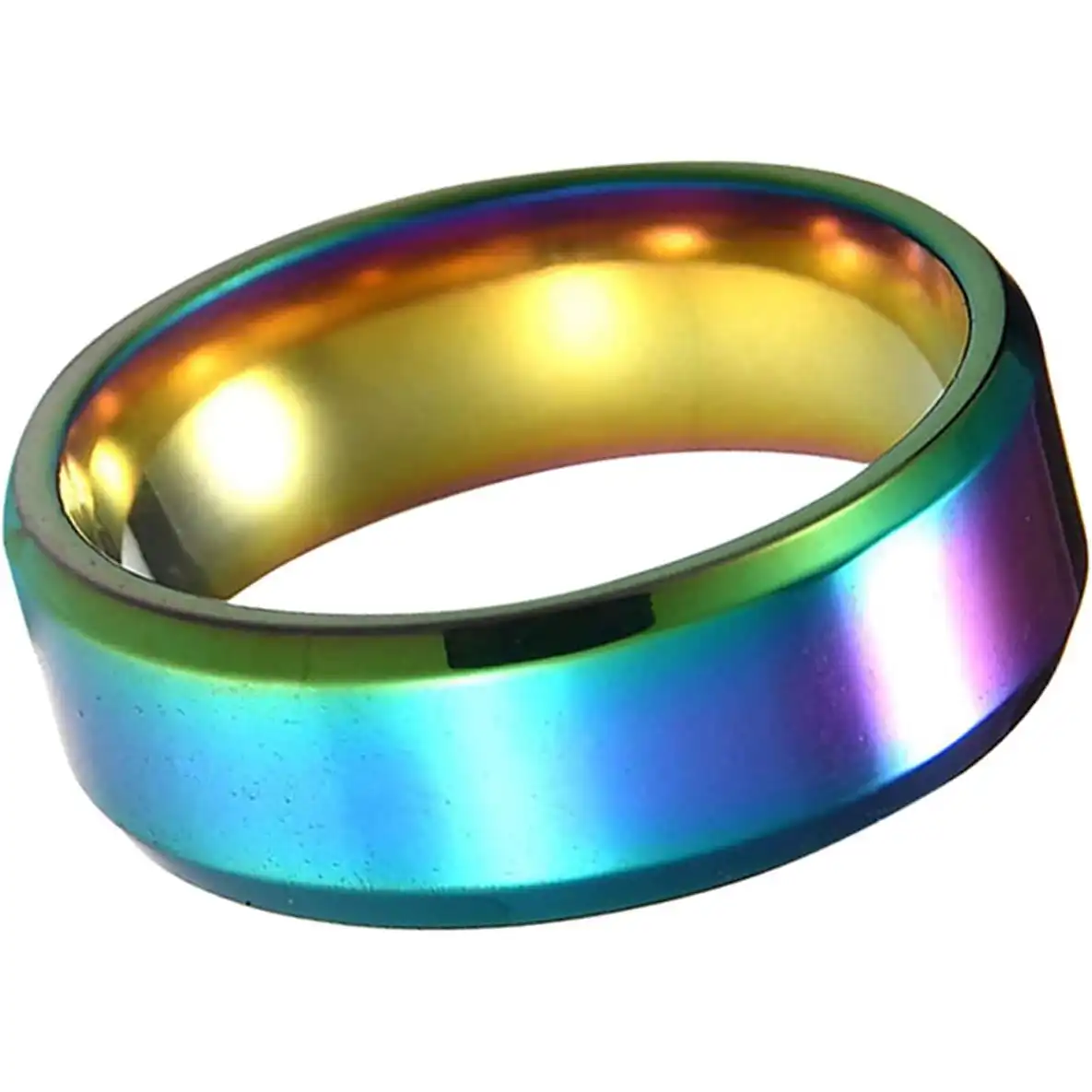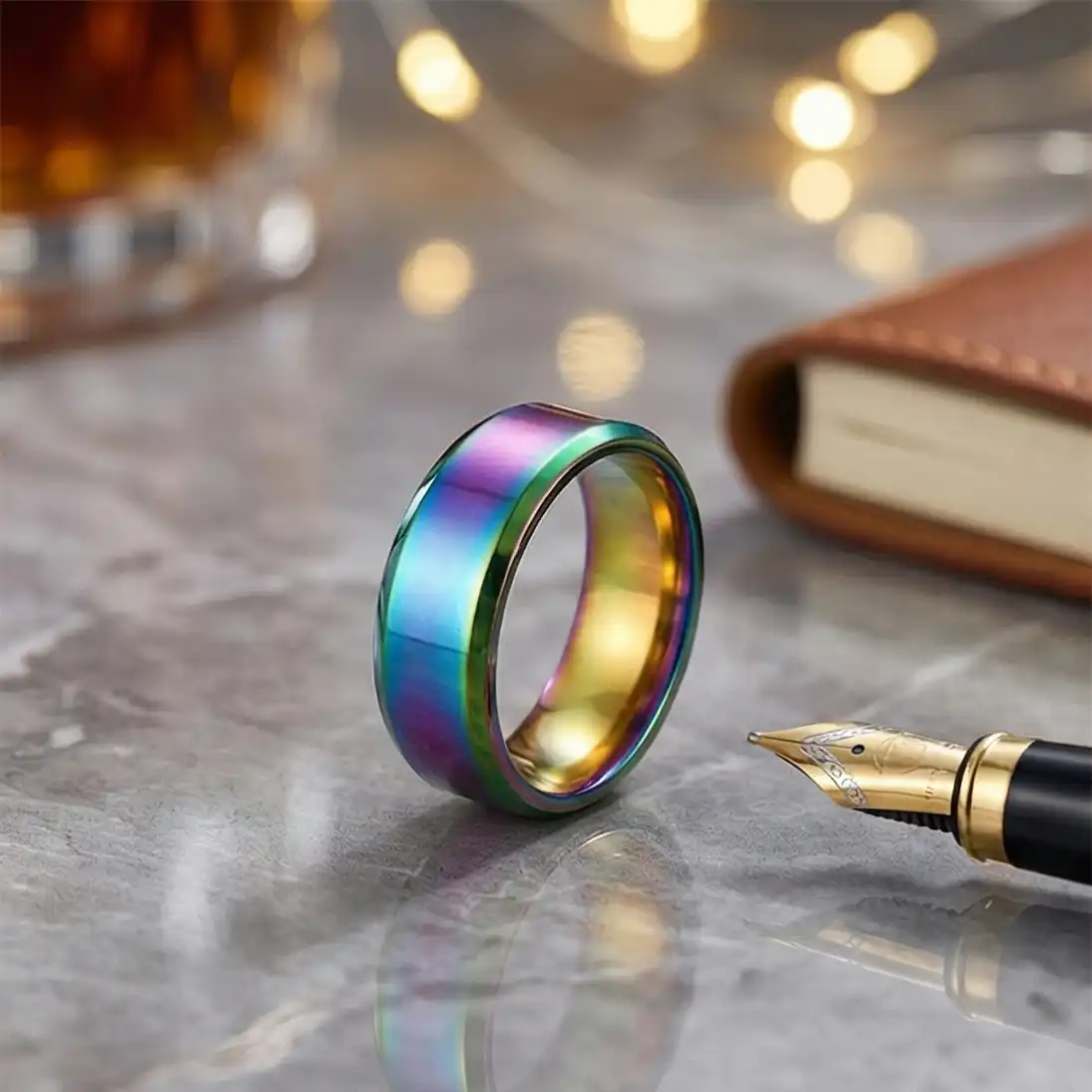 8mm Rainbow Ring Stainless Steel Band – Multi-Color Iridescent Wedding Ring for Him and Her, Durable Scratch Resistant Comfort Fit Fashion Jewelry Gift