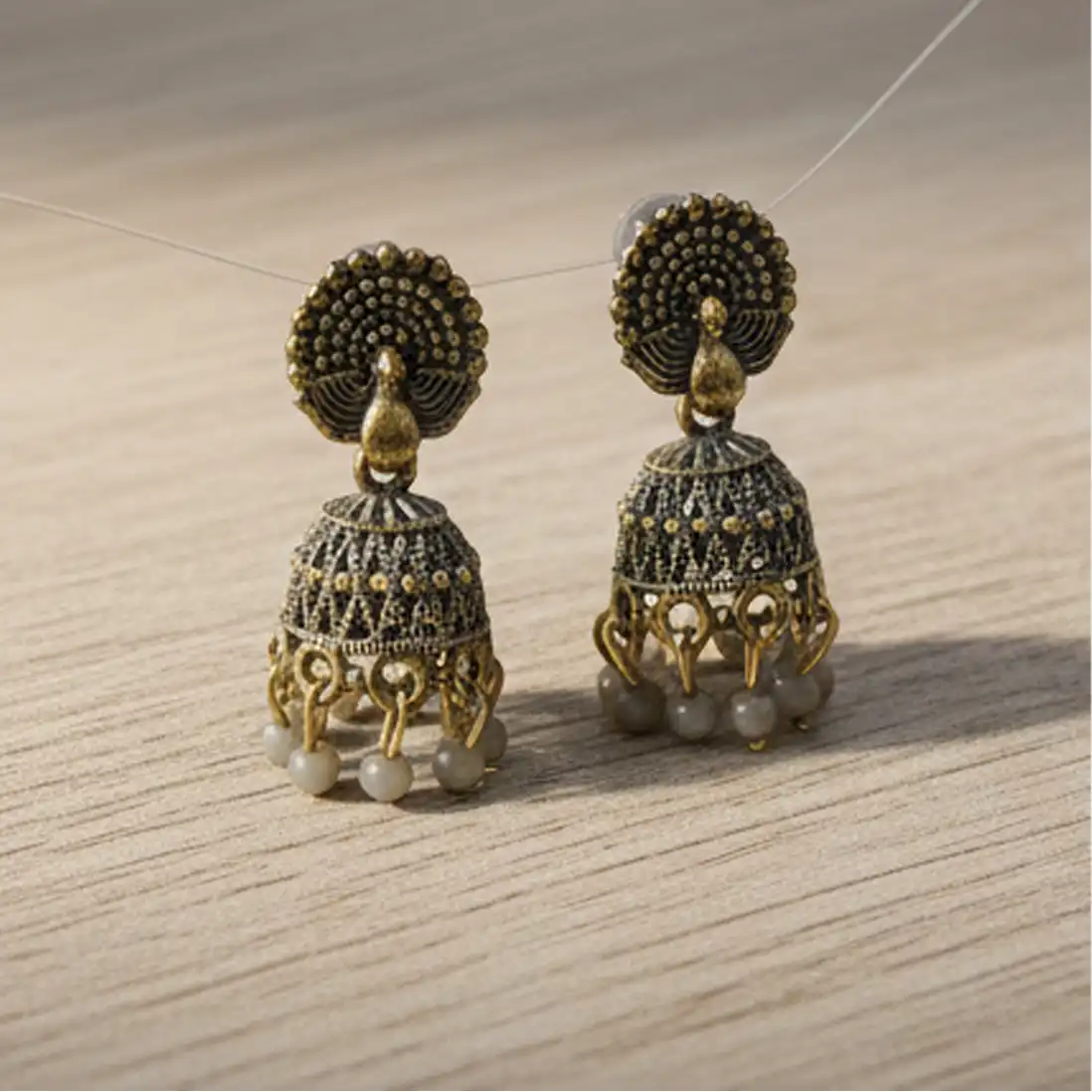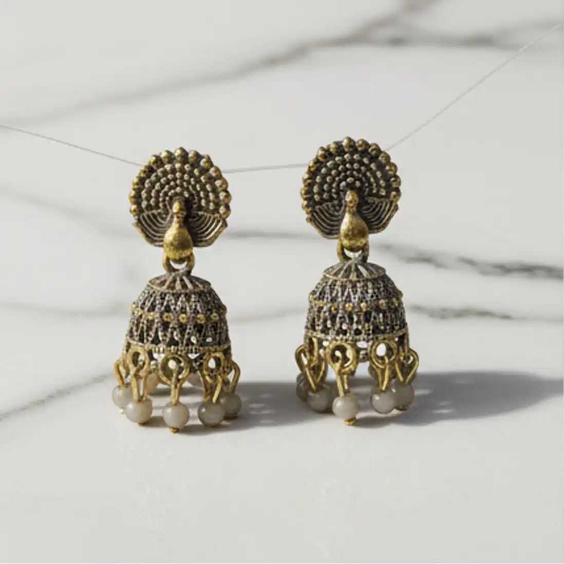 Antique Gold Peacock Jhumkas | Traditional Indian Earrings