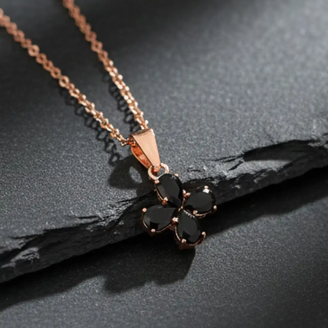 Black Clover Pendant Necklace in Rose Gold – Four Leaf Good Luck Charm