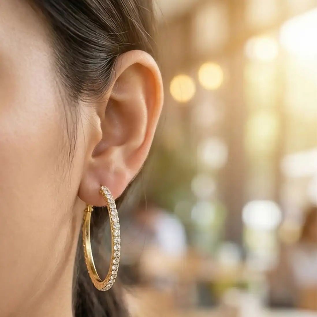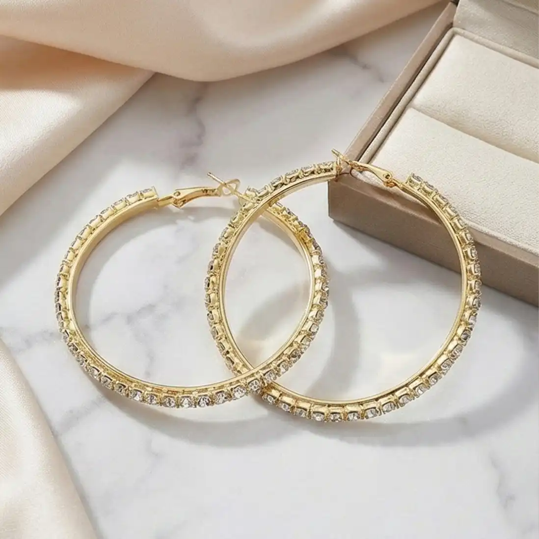 Brilliant Sparkle: Each hoop is meticulously set with high-grade crystals that capture light from every angle, mimicking the fire of real diamonds.