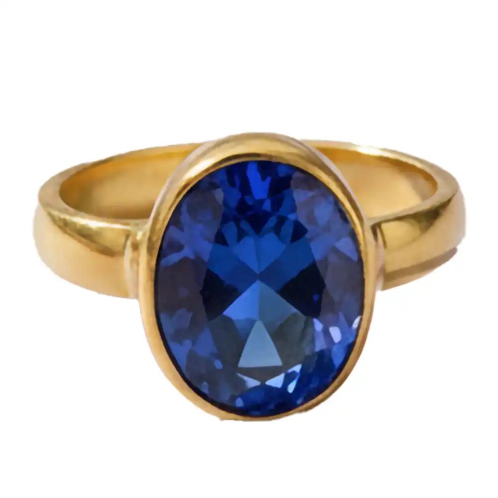 Royal Blue Neelam Stone Ring – Polished Gold Plated Bezel Setting – Snag-Free Solitaire Engagement Promise Ring – Modern Classic Style