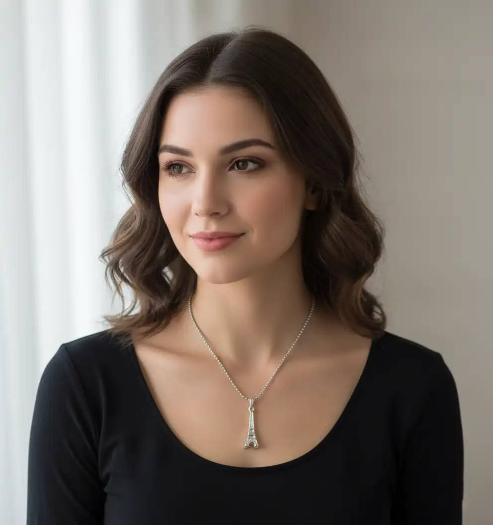 Style Tip: Embrace the ultimate “Parisian Chic” aesthetic by styling this charming pendant with a classic Breton striped top, a sleek tailored blazer, and your favorite vintage-wash denim. It also serves as a fantastic anchor piece when layered with longer, minimalist silver chains for a curated, bohemian travel look.