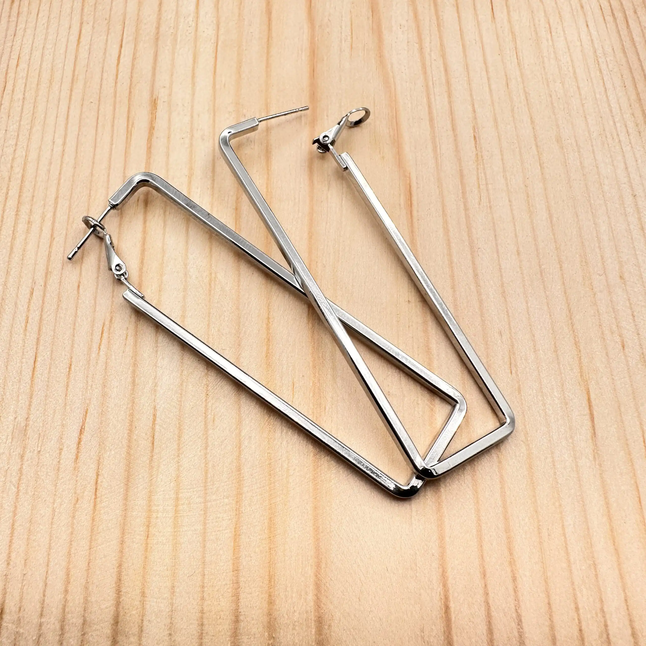 Stainless Steel Rectangular Hoop Earrings for Women – Large 60mm Silver Tone Geometric Square Hoops – Hypoallergenic Lightweight Statement Jewelry (6cm x 2cm)