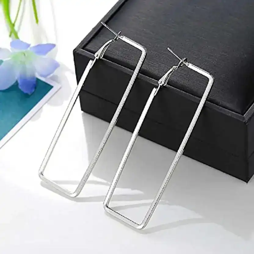 Striking Geometric Design: Elevate your jewelry collection with these bold Costozon rectangular hoops. Unlike traditional round hoops, this sharp, elongated rectangular silhouette (6 cm length) offers a modern, edgy aesthetic that instantly updates any outfit, from casual denim to evening wear.