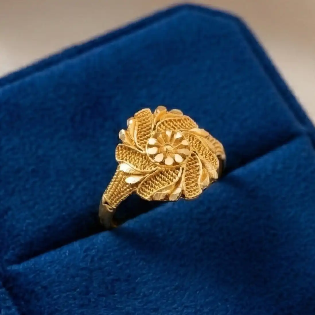 The Festive Look: Pair the floral statement rings with a vibrant silk saree or an embroidered lehenga. The gold-tone beautifully complements warm ethnic hues like crimson, emerald, and deep saffron.